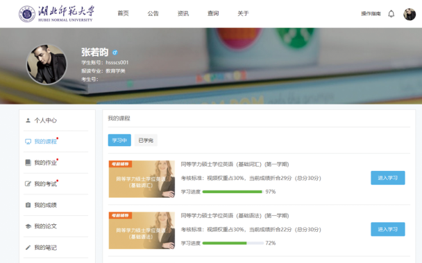 • 同等学力申硕学习管理平台学员端界面